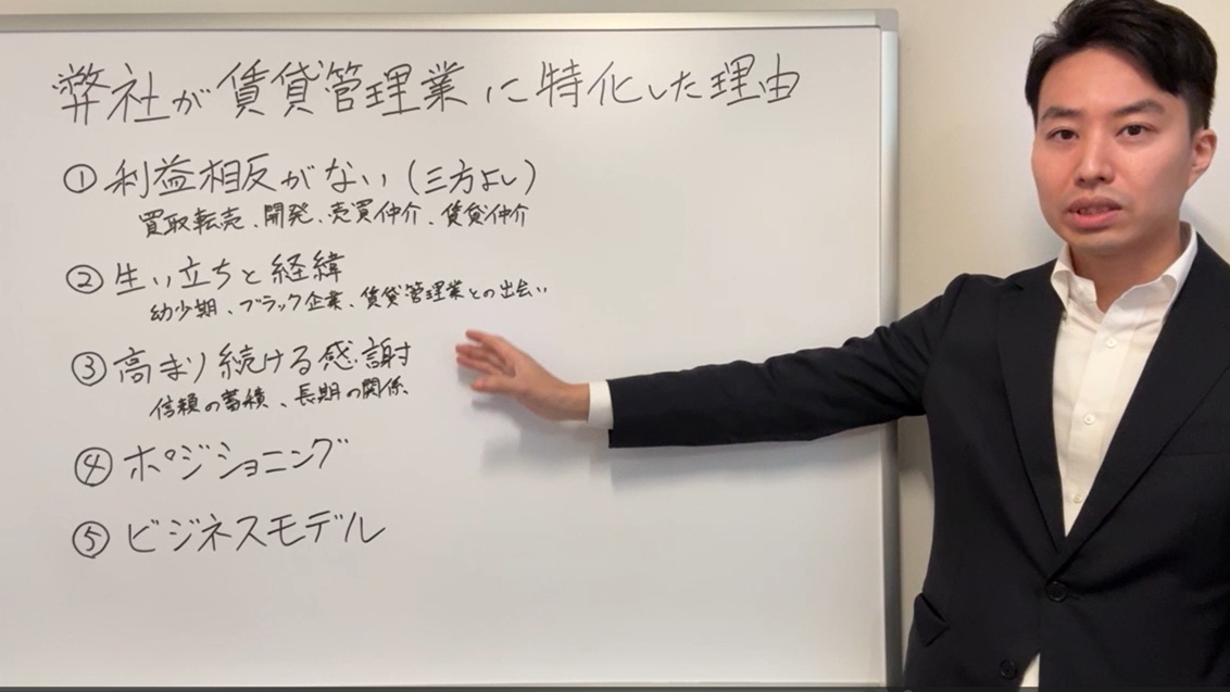 そのような中で、なぜ弊社が賃貸管理業に特化して会社を設立したのか、また、賃貸管理業を行うにあたって、どのような想いを持って取り組んでいるのかをお伝えします。