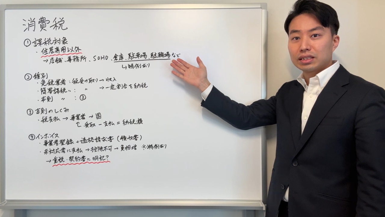 しかし、店舗、事務所、SOHOを扱う場合はもちろん、駐車場やトランクルーム、駐輪場でも関係してくる極めて重要な税金です。